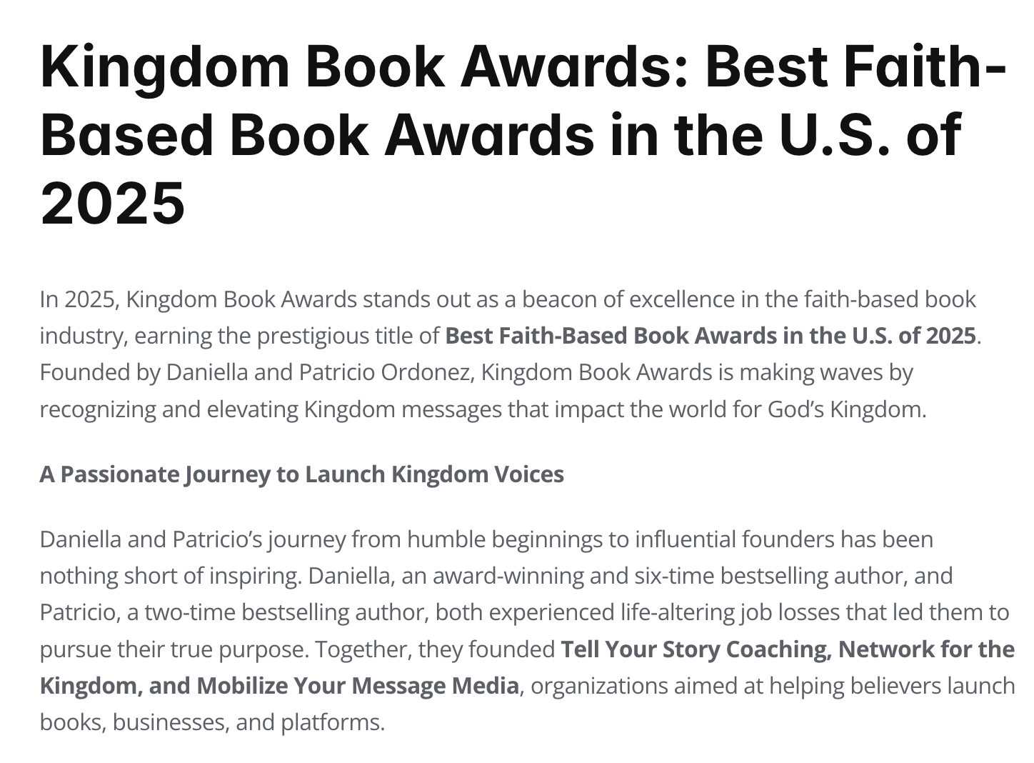 TheKingdom Book Awardshonors Christian authors whose books carry amessage that matters, createmeasurable impact, and releaseKingdom truthsin various areas of influence. Whether you write to equip the church, empower families, shift mindsets, or disciple children, your work deserves to beseen,celebrated, andshared.